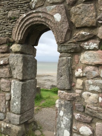 The ‘treachery’ associated with Morecambe Bay lies visible through the open door of St Peter’s Chapel, above: the sea; and the shifting and deadly sands on which it flows.