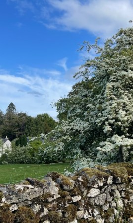 Safely across without being sworn at by speeding motorists, we recovered our composure in time to compose this view of the majesty of Leven’s ancestral hall. An Elizabethan masterpiece which survives intact – with its period gardens.
