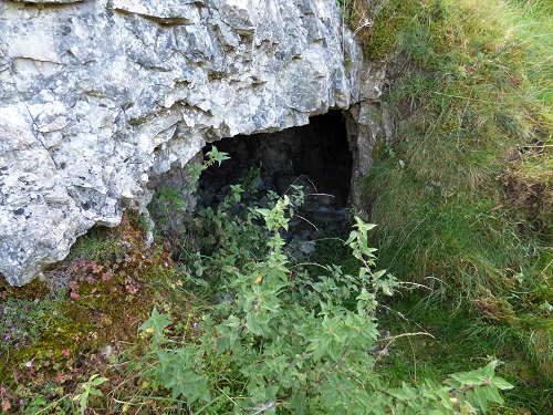 The cave is a low, two-pronged shaft at the base of a cliff. It is an uncomfortable crawl to get inside, as years of fallen stones line the passageways that disappear into the darkness; we would not ask them to enter.
