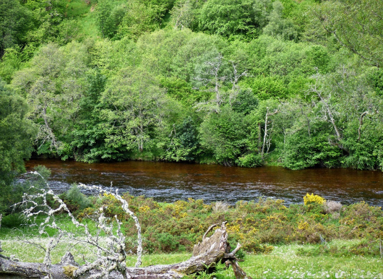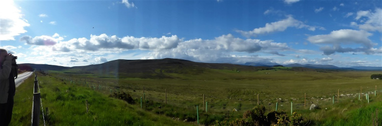 The timing was good… because, at that moment, the trees on either side ended and the world fell away. The splendour of the Spey Valley spread out below us like a detailed picture.